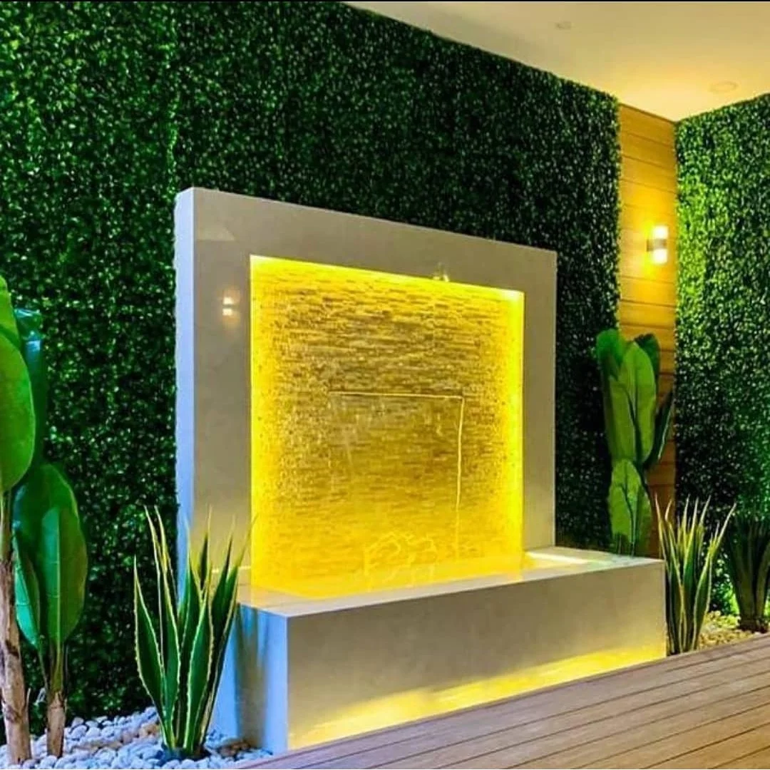 كما نقوم بعمل تصميم وتركيب جميع أنواع وأشكال العشب الجداري المخصص لتزيين الجدران الخارجية والداخلية الخاصة بحديقة المنازل أو الفلل أو القصور